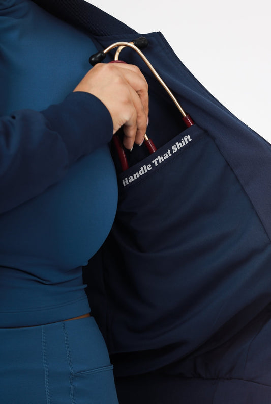 Elevate your everyday scrub game with our one-of-a-kind scrub jacket that adds a modern twist to the traditional medical uniform.